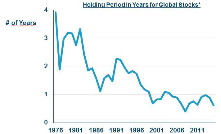 Figure 1 – The average holding period for global stocks has decreased by 75% over 40 years