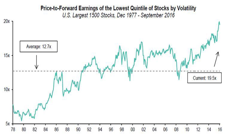 Low volatility stocks have been enjoying their moment in the sun but we think that their valuations are now looking stretched and we could be in a low volatility stock bubble. The key is to separate the undervalued stocks with low volatility characteristics from the overvalued stocks which have benefited excessively from the low-volatility wave but no longer have the fundamentals to support the valuation level.