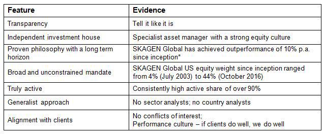 Source: SKAGEN, as at 31 October 2016. Data provided is for SKAGEN Global A, inception date 07/08/1997.* Based on GBP returns for SKAGEN Global A, net of fees.