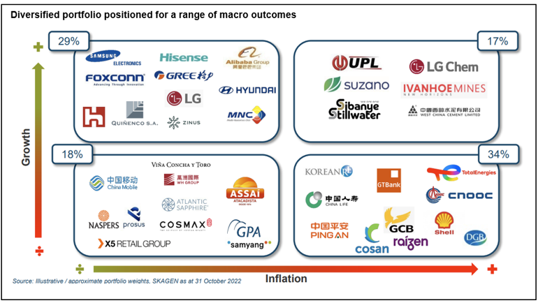 With the economic outlook remaining uncertain, the portfolio is positioned to weather different growth and inflationary environments. The fund is expected to perform slightly better in a scenario of higher inflation and lower growth, which is aligned with the majority of economic forecasts, but holdings should also perform strongly if we see a more positive 'Goldilocks scenario' with stable growth and lower price rises.