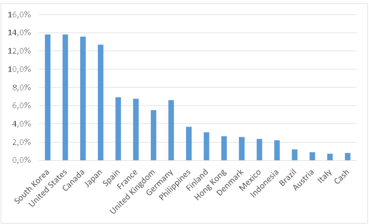 Graf 3 – SKAGEN Focus geografisk sammansättning per 31 dec 2024