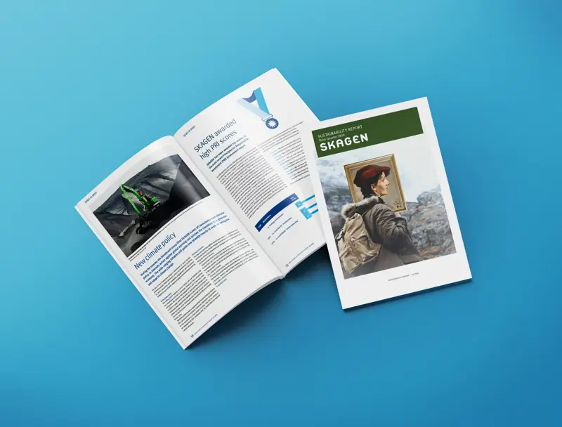 Utveckling sker också i vårt hållbarhetsarbete som företag, i egenskap av arbetsgivare, beställare och samhällsaktör. SKAGEN slöt nyligen avtal med hållbarhetskonsulten Cemasys, och tillsammans har vi påbörjat en omfattande klimatrevision för att mäta våra koldioxidutsläpp. Allt ifrån energiförbrukning på våra kontor till tjänsteresor och avfall tas med i revisionen, för att vi tydligare ska kunna se hur vi kan minska vår påverkan som företag. Läs mer på sid 9 i rapporten!