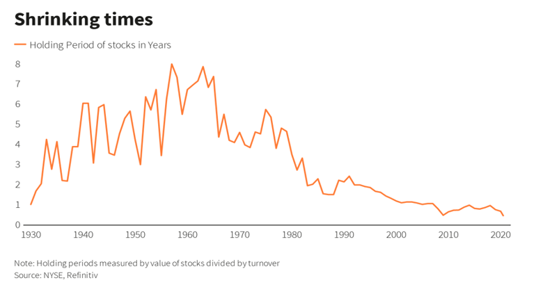 I forsøget på at forstå årsagen til, at nogen slår indekset igen og igen, har flere studier identificeret en række karaktertræk blandt de bedst præsterende aktive forvalteres porteføljer. For det første forbedrer det afkastet at tænke langsigtet. En uheldig konsekvens ved den teknologiske udvikling og stærkere computerkraft er, at markedets deltagere i stigende grad investerer kortsigtet. Da passive investeringer ved hjælp af algoritmer kom frem og startede den højfrekvente handel, faldt den gennemsnitlige ejerperiode fra otte år i 1960'erne til mindre end seks måneder nu[5] (9).