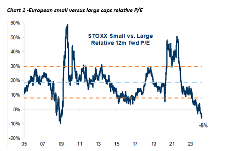 Europeiske småselskaper handles til en rabatt mot store selskaper, sist sett under den globale finanskrisen:
