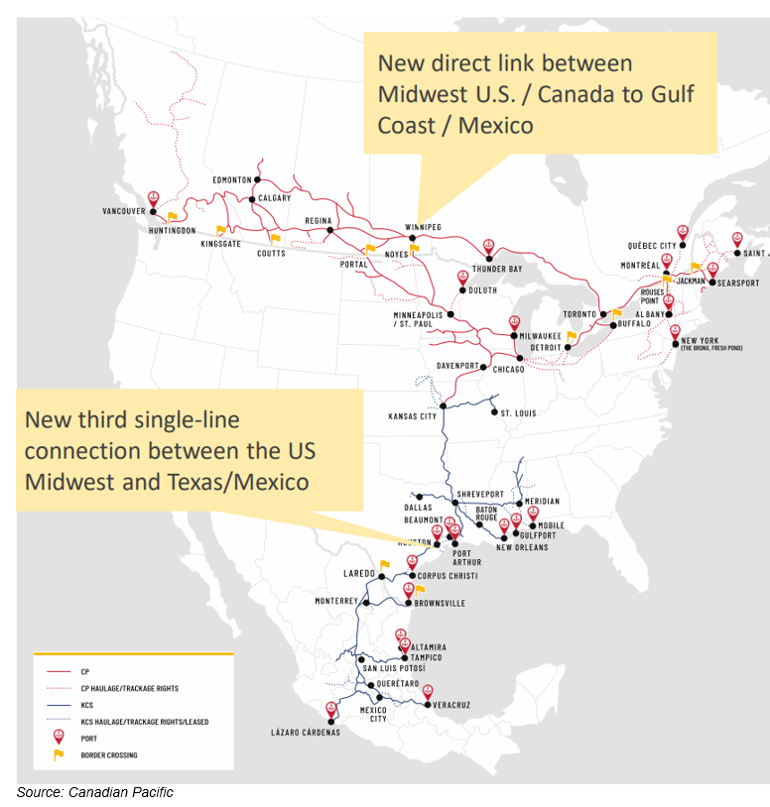 Dette gir store muligheter for å tilby kundene forbedrede forsyningskjeder gjennom partnerskap med andre transportører og fraktselskaper, eller gjennom utvidelsen av Canadian Pacifics eget jernbanesystem, ettersom selskapet eier sin egen infrastruktur.
