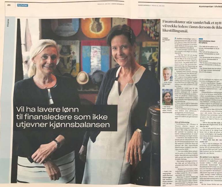 "Vil kutte i lønnen til finansledere som ikke utjevner kjønnsbalansen" - Artikel fra Dagens Næringsliv (på norsk)