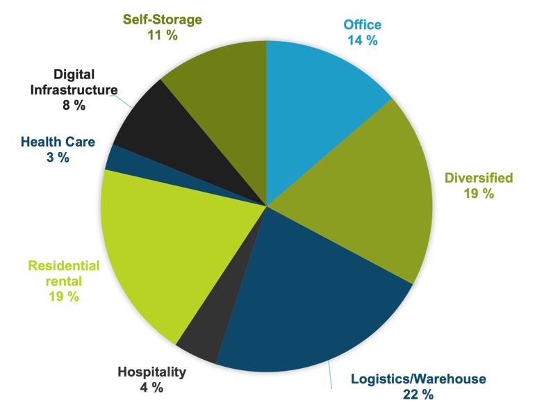 Til trods for at den globale vækst skønnes at nå 4,4 pct. i år [7], er de økonomiske skyer stadig grå. Den amerikanske rentekurve har vendt sig, hvilket er et varsel om mulig recession, og krigen i Ukraine kaster fortsat lange skygger. Grundet usikkerheden er SKAGEN m2's portefølje positioneret cirka 60/40 med en overvægt mod de defensive segmenter. Defensive segmenter kunne for eksempel være datacentre, logistik, udlejning af lagerplads til private, beboelse, lejeboliger, sundhedsvæsenet samt dem som er gearet mere til den økonomiske bedring såsom kontorer, handel og hoteller/restauranter.