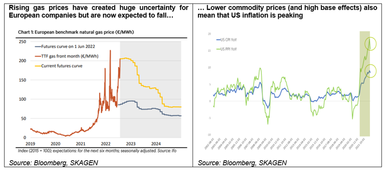 "Prisen på mange råvarer – herunder olie – er allerede faldet, forsyningskæderne genvinder fodfæste efter COVID, og centralbankerne er begyndt at anerkende svagheden i økonomien," forklarer han og fortsætter: