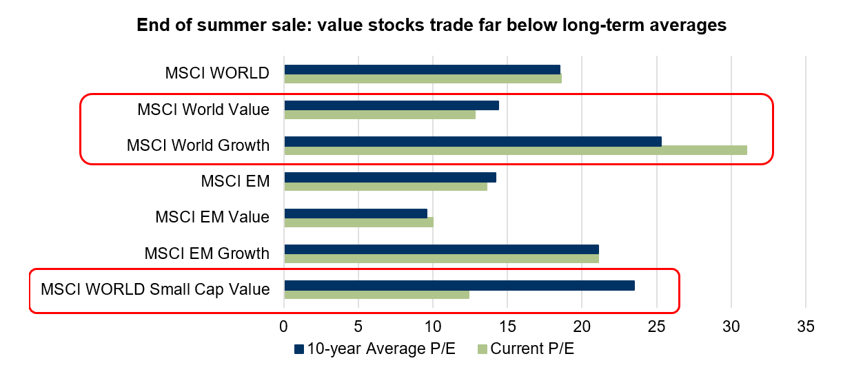 Ser man specifikt på de små selskaber, er balancen mellem risiko og afkast endnu mere skævvredet. Small-cap value-aktier handles i øjeblikket 50 pct. billigere end deres 10-årige gennemsnit. Det gør både small-cap-selskaberne til et godt sikkerhedsnet, men udtrykker også en stor mulighed for afkast, især fordi jeg tror, vi kommer til at se flere små selskaber blive opkøbt af større med en ambition om at booste prisfastsættelserne (særligt hvis prisfastsættelserne kommer under pres). En sådan udvikling vil hurtigt få prisfastsættelserne i small-cap tættere på deres historiske gennemsnit.
