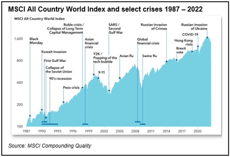 1: MSCI All Country World-indekset til og med d. 30/09/2022 i euro (-20.1%).